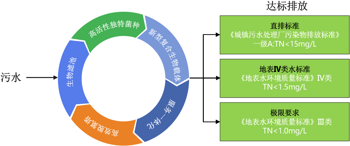 技术方案工大开元ExDn超净脱氮技术提供工程勘查、实验论证、方案设计、装备加工和集成、工程实施和工程运维一站式服务,该技术核心主体生物载体、功能微生物菌种和生物滤池均为自主研发,该技术的实用性在于能够根据水质条件、处理目标进行菌种、生物载体、滤池的科学选型和适应性调节,可独立运行,也可分别与生化尾水提标改造或新建项目配套运行,在满足出水TN达标的同时,保证其它各项水质标准同步达标。