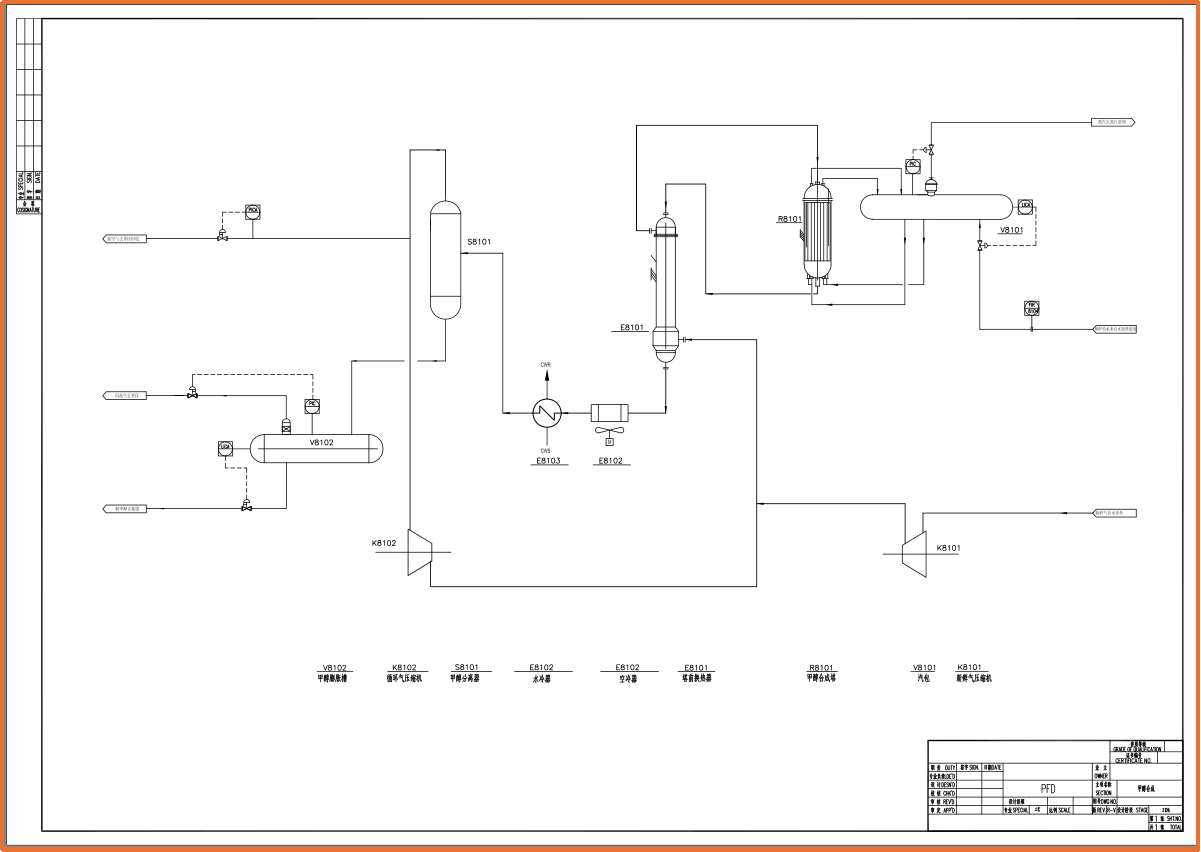 本项目为1000吨/年氨合成项目,年运行时间8000小时,操作弹性30%~110%