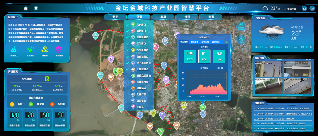 结合园区实际需求进行定制扩展,完成园区安全、环保、封闭管理、应急以及能源等方面的监控监管,实现对园区企业安全生产、环境保护、封闭管理、能源的实时动态监管和封闭化管理要求,促使园区各项监管工作更加智能化、精准化和便捷化,为园区安全生产、环境保护监管提供助力。